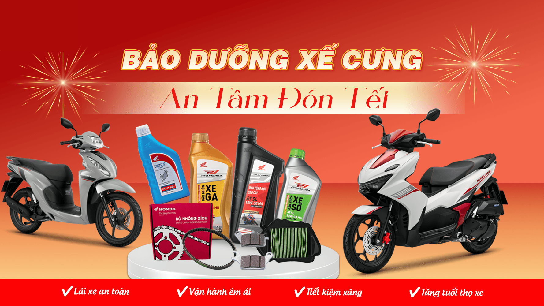 Đừng để cận Tết mới lo chăm xe. Bảo dưỡng ngay hôm nay để xe luôn mượt, bền bỉ và an toàn trên mọi hành trình bạn nhé!