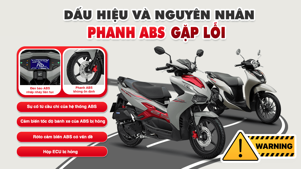 Đèn báo ABS liên tục nhấp nháy trên mặt đồng xe, hoặc sau khi khởi động xe di chuyển đèn báo ABS luôn sáng không tắt